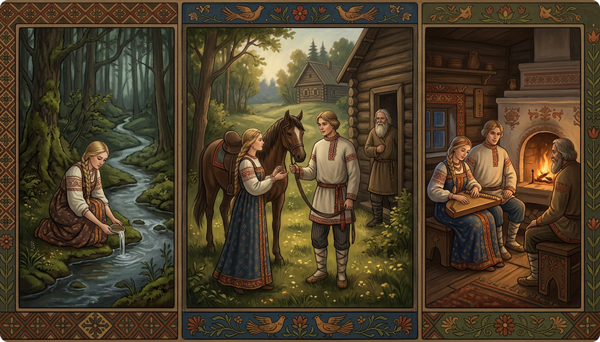 Russian fairy tales are among the most significant elements of national folklore. They are exciting stories of adventure, the struggle of good against evil, and overcoming challenges. The characters of fairy tales often represent certain qualities – wisdom, courage, kindness or cunning. Fairy tales also reflect people’s ideas about the structure of the world, relations between people and social norms. Each fairy tale is rich in archetypes and hidden meanings that hold folk wisdom.