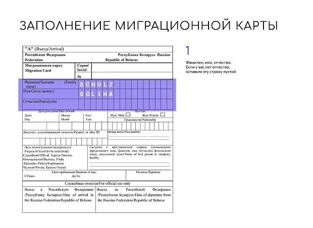 بهتر است فرم را به زبان روسی پر کنید، اما حروف لاتین نیز پذیرفته میشوند.