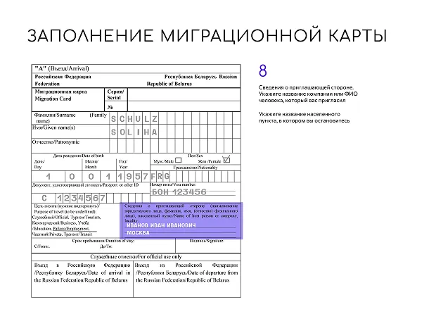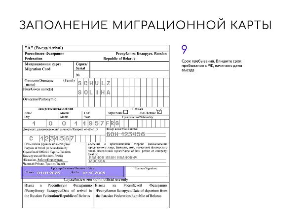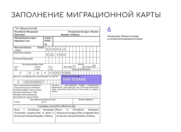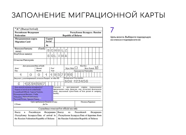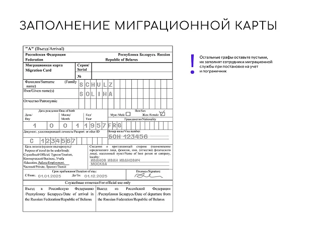 - در هنگام ورود، کارت مهاجرت را پر کنید و هنگام خروج از قلمرو فدراسیون روسیه آن را به مأمور مربوطه تحویل دهید.