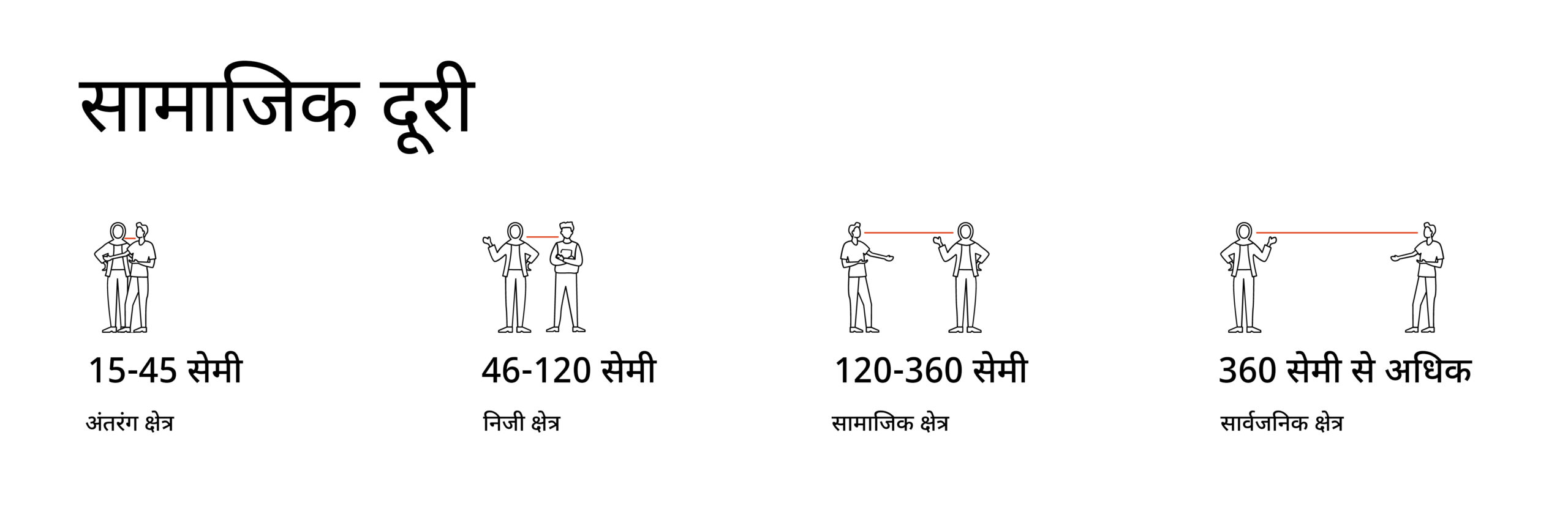 मनोवैज्ञानिक सहूलियत, व्यक्तिगत सुरक्षा और संक्रमण के प्रसार को रोकने के लिए लोगों के बीच दूरी बनाए रखना आवश्यक है। दूरी आपके परिचितों की निकटता, आयु, लिंग, सामाजिक भूमिका और कम्युनिकेशन की स्थिति पर निर्भर करती है।