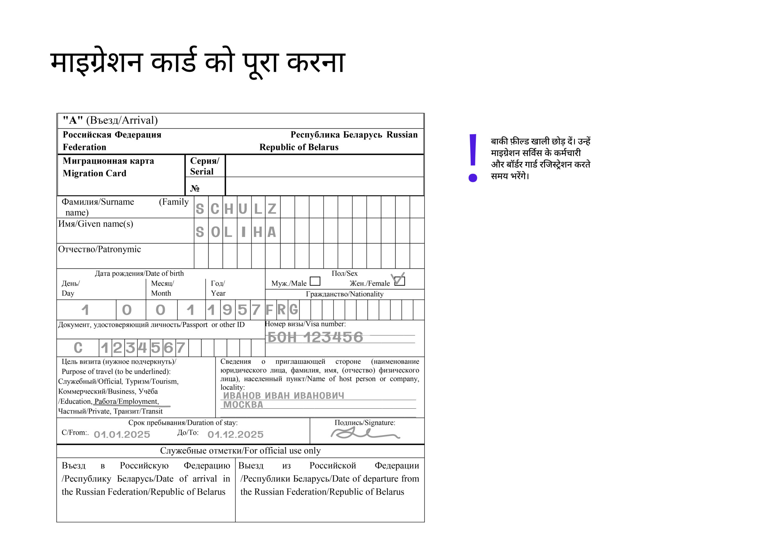 - प्रवेश करते समय माइग्रेशन कार्ड भरें और रूसी संघ छोड़ते समय इसे किसी अधिकारी को सौंप दें।