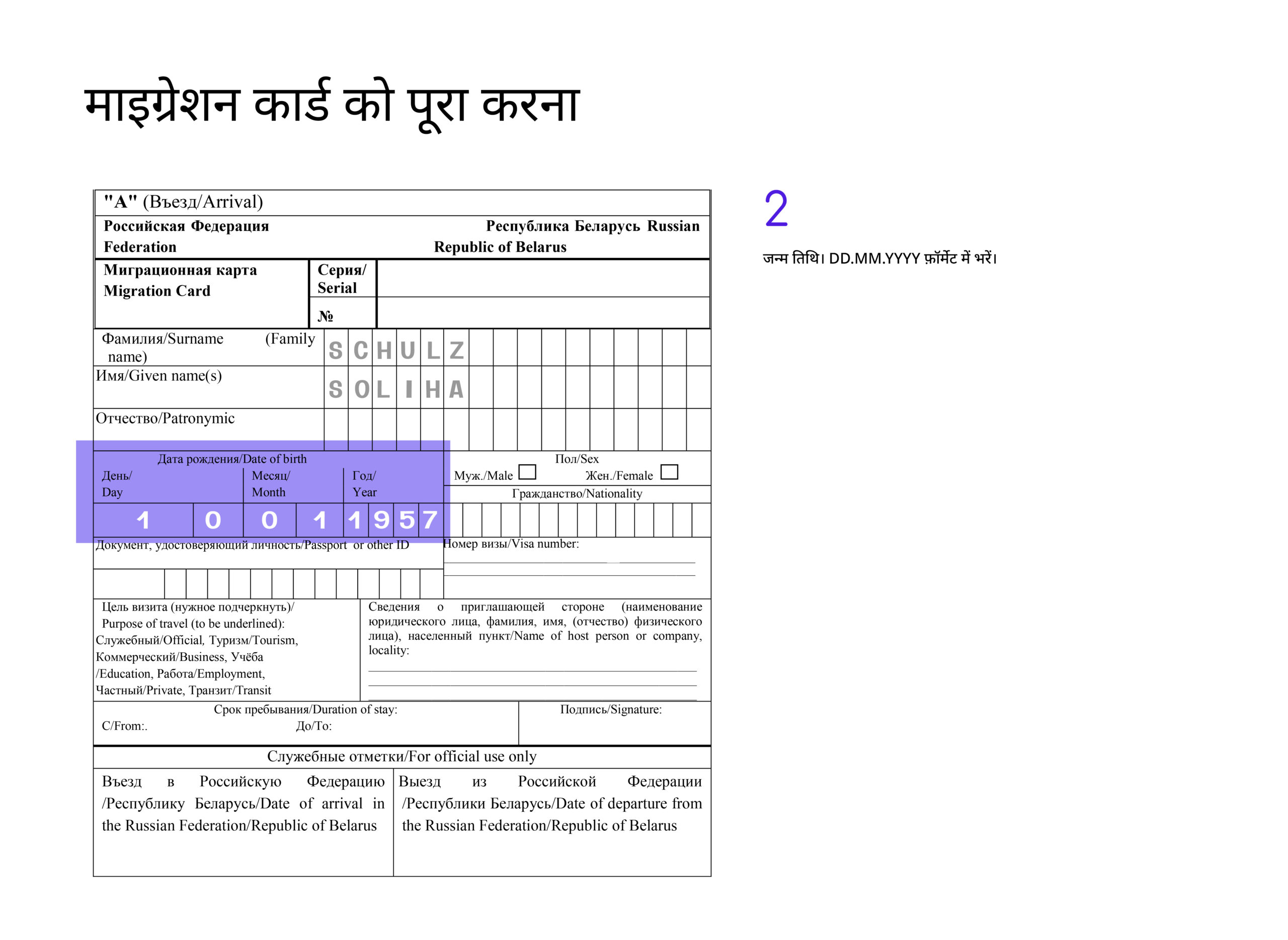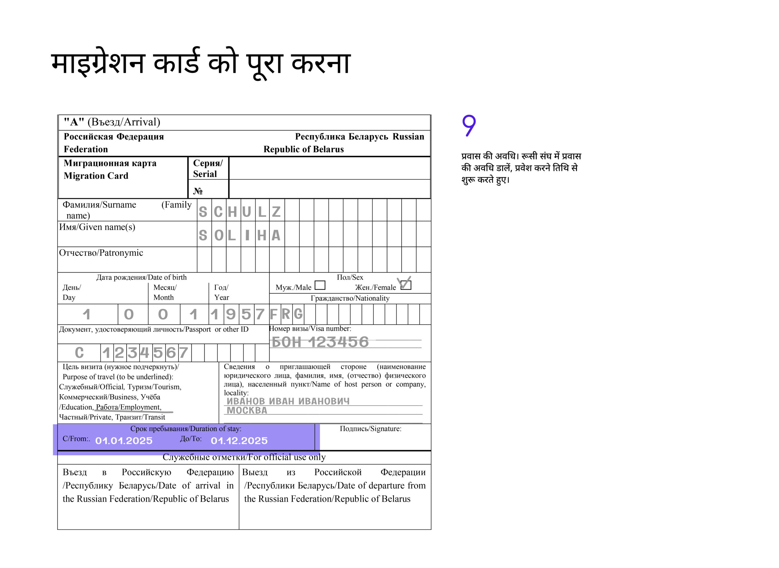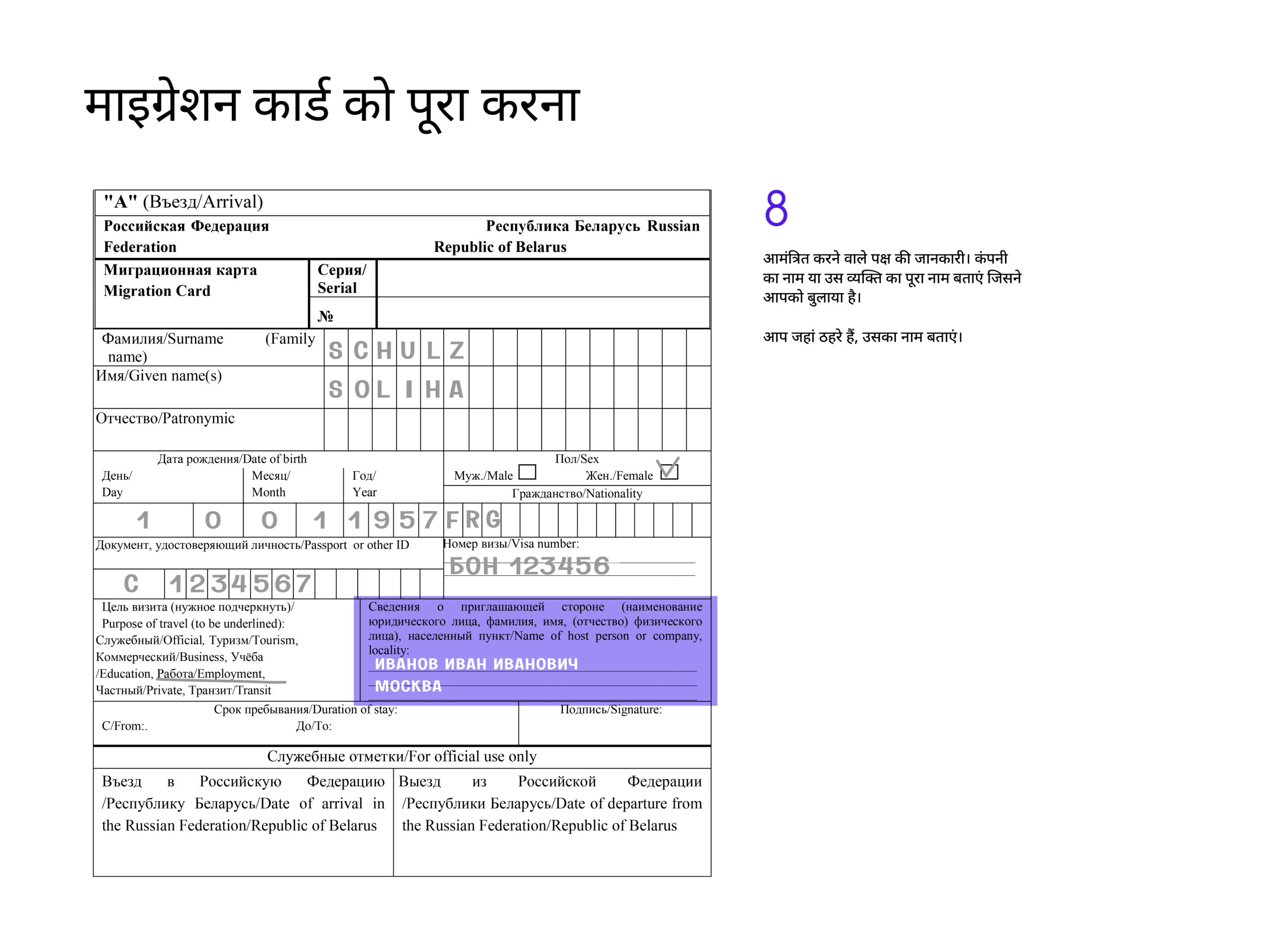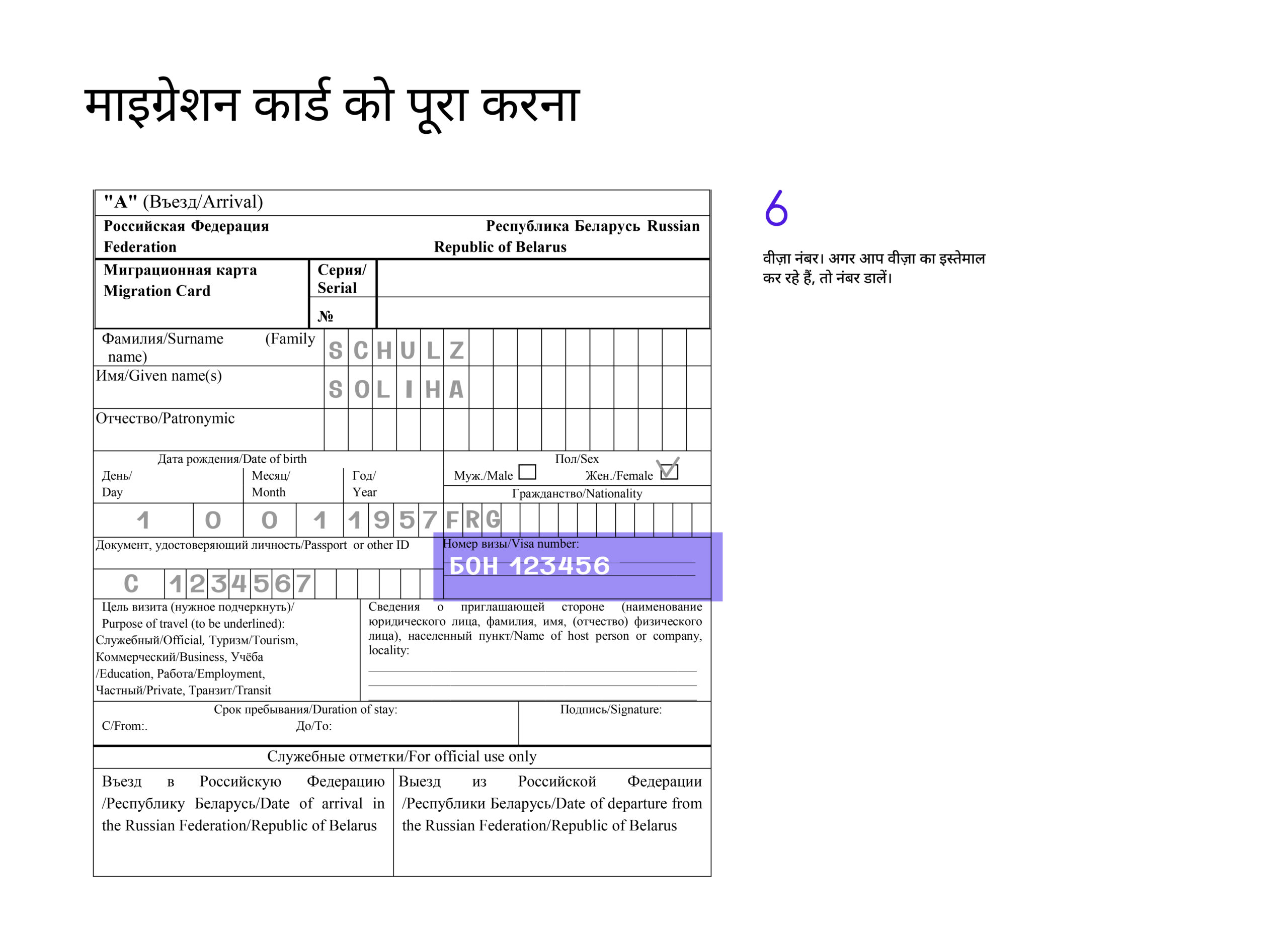 रूसी संघ में प्रवेश करते समय, पासपोर्ट नियंत्रण पर मौजूद बॉर्डर गार्ड ऑफिसर से माइग्रेशन कार्ड का फॉर्म ज़रूर ले लें।