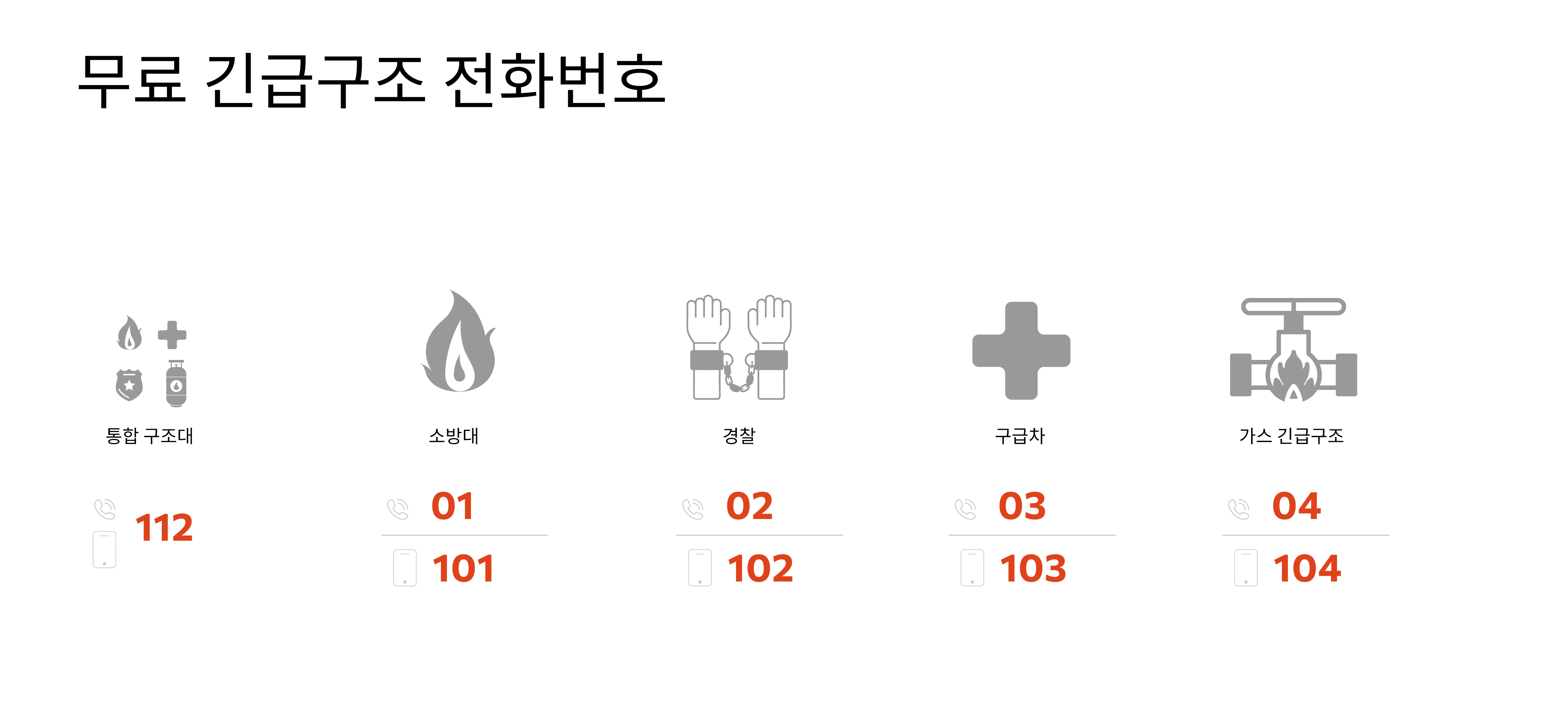 가장 가능성이 높은 긴급 상황을 다루고 이에 대처하기 위한 실용적인 단계를 제공해드렸습니다. 이 정보는 중요한 상황에서 침착함을 유지하고 효과적으로 행동하는 동시에 예방 조치를 취하는 데 도움이 됩니다. 긴급 상황에 처한 경우 침착하게 위에서 설명한 규칙을 따르고, 언제든지 무료 긴급 전화 번호인 “112”로 전화할 수 있다는 점을 기억하세요.