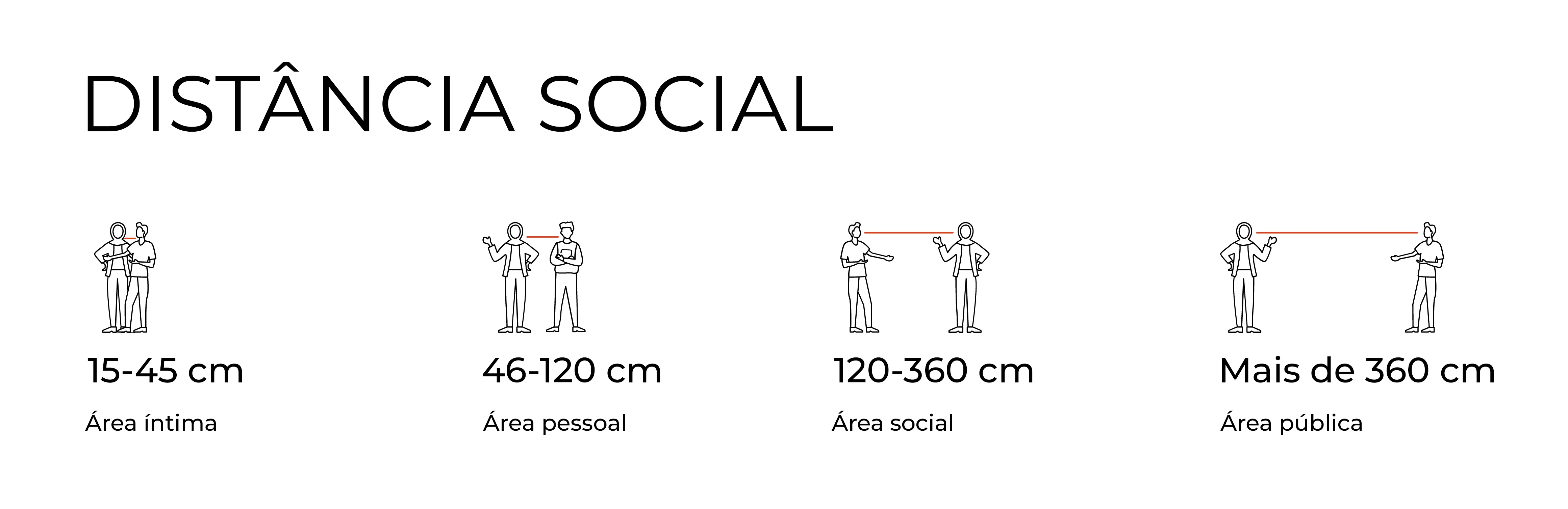 Para o conforto psicológico, a segurança pessoal e para evitar a disseminação de infecções, é necessário manter uma distância entre as pessoas. A distância depende da proximidade do seu conhecido, da idade, do gênero, dos papéis sociais e da situação de comunicação.