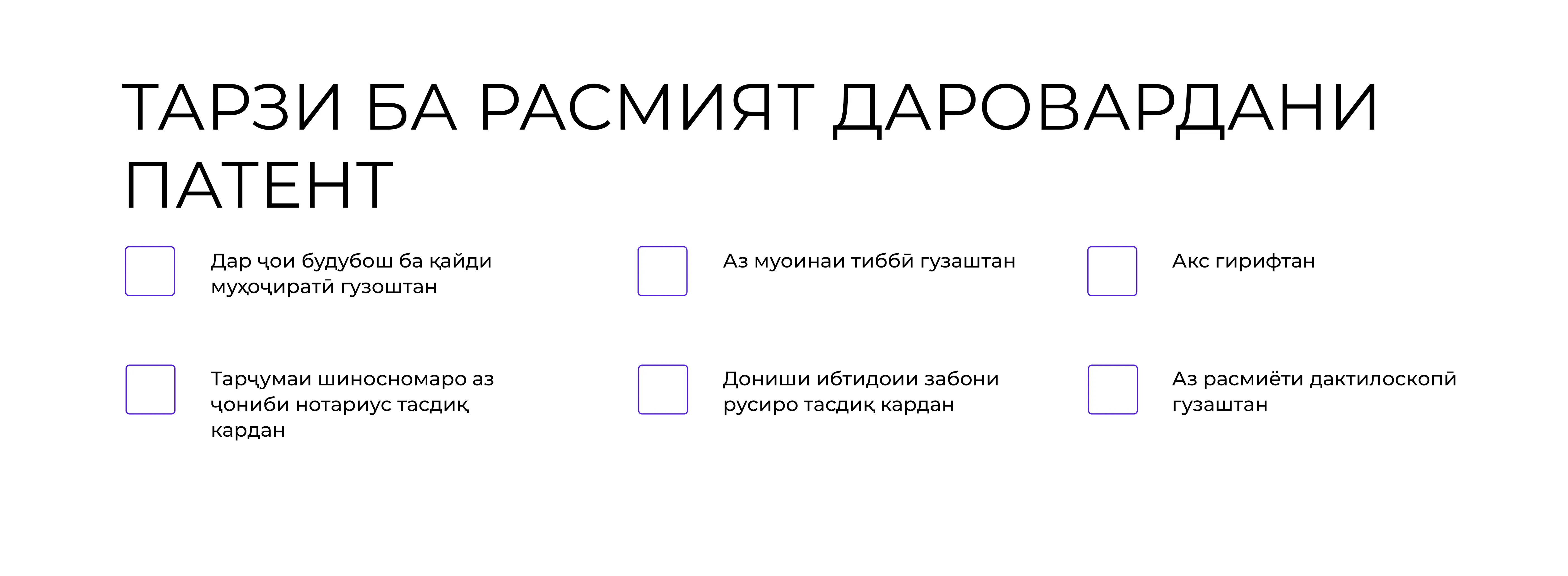 ва барои ба қайди муҳоҷиратӣ гузоштан, гирифтани патент