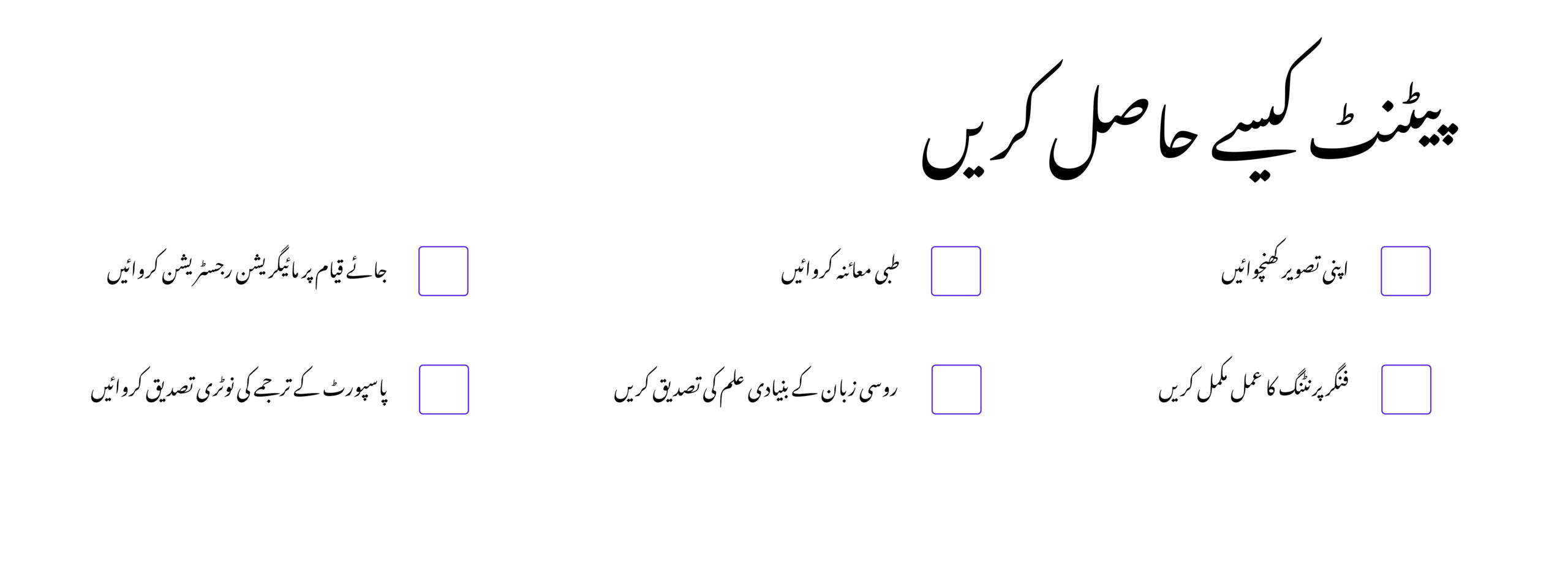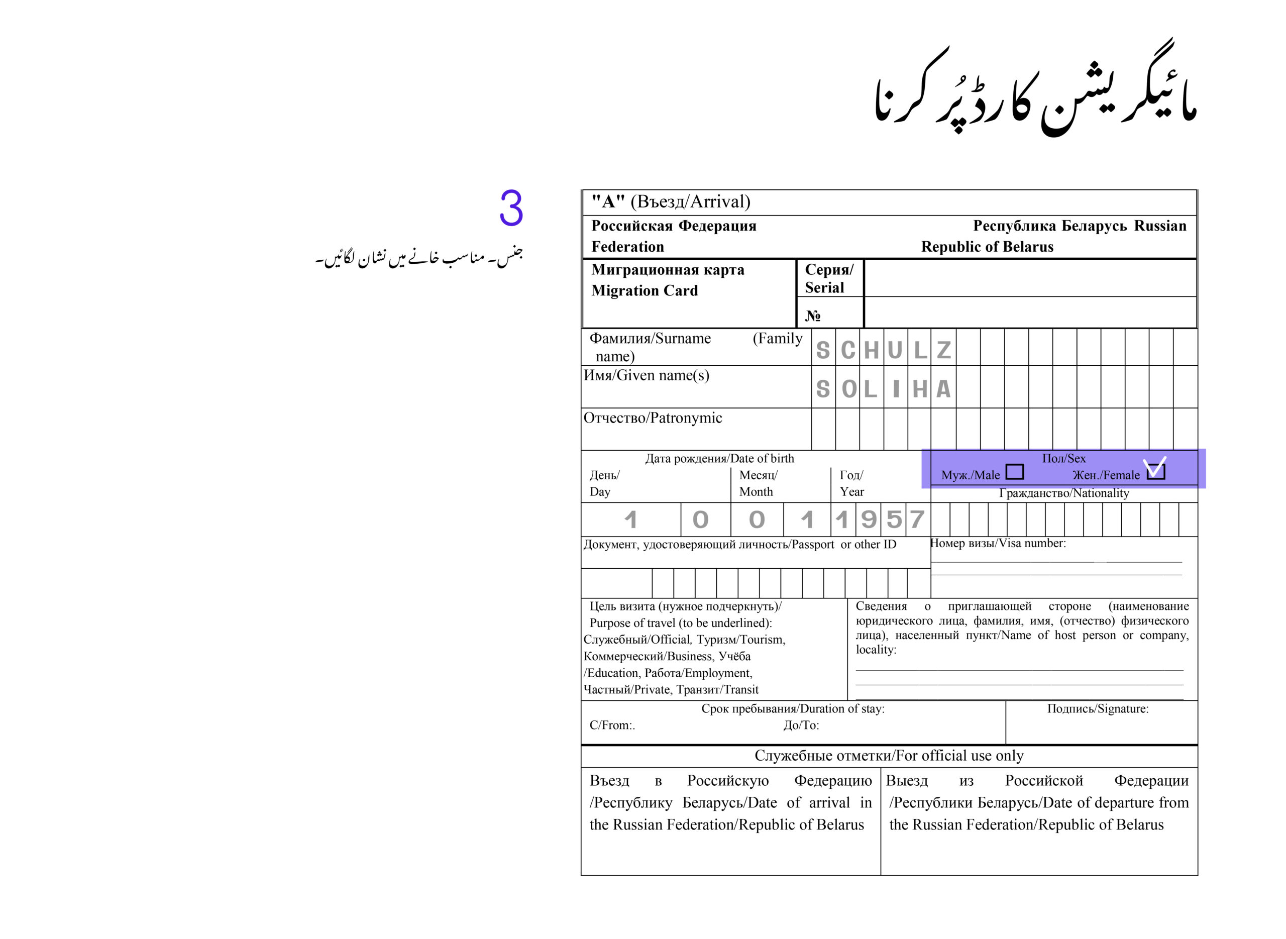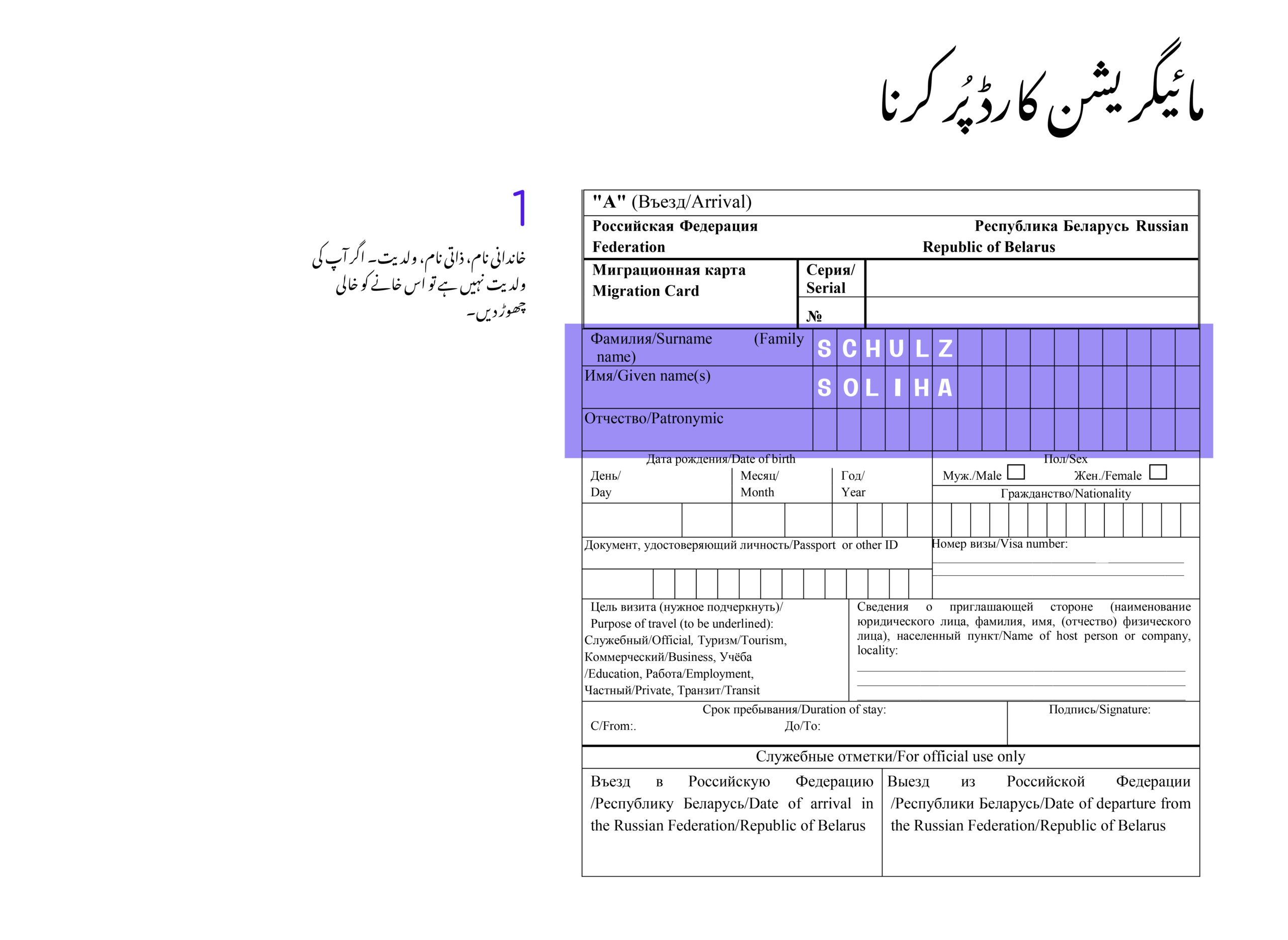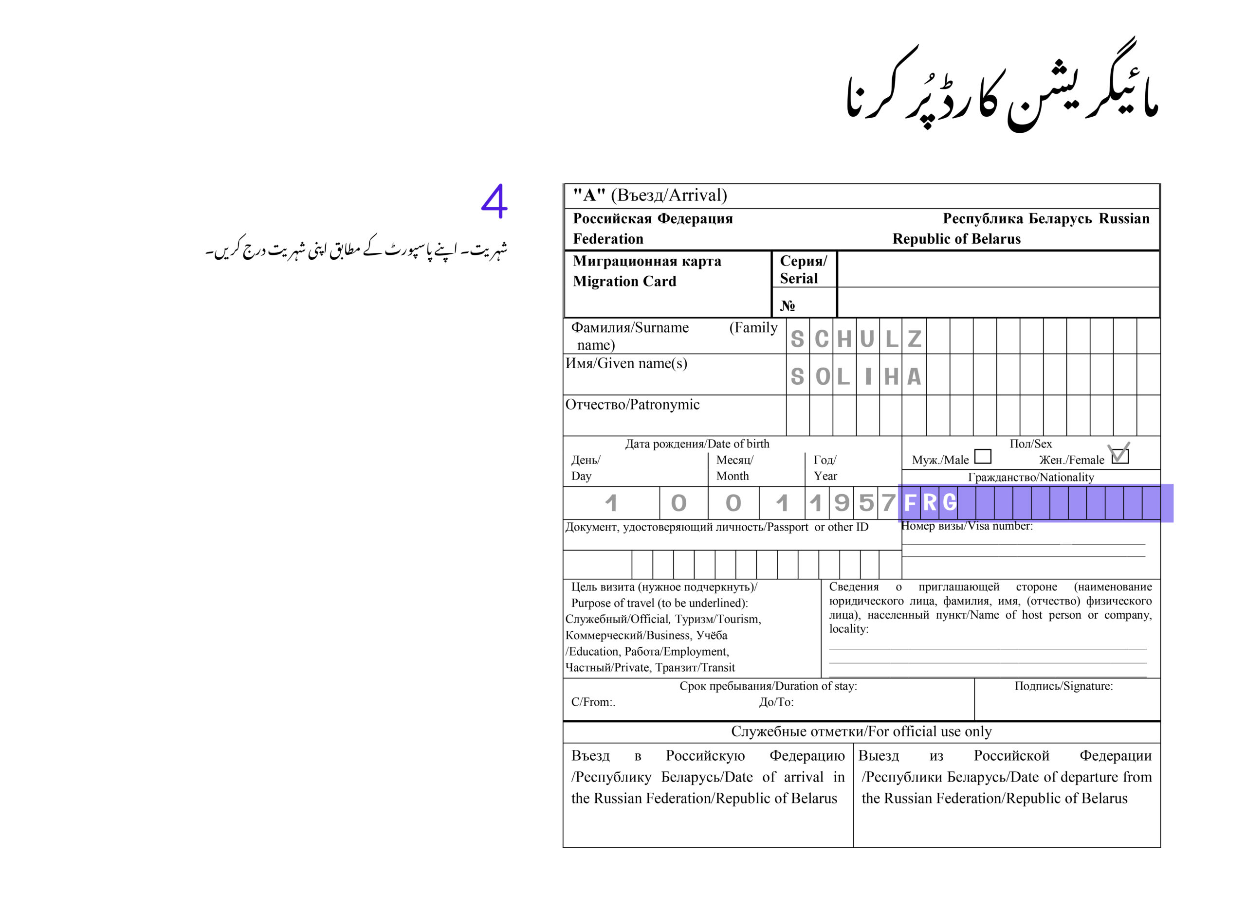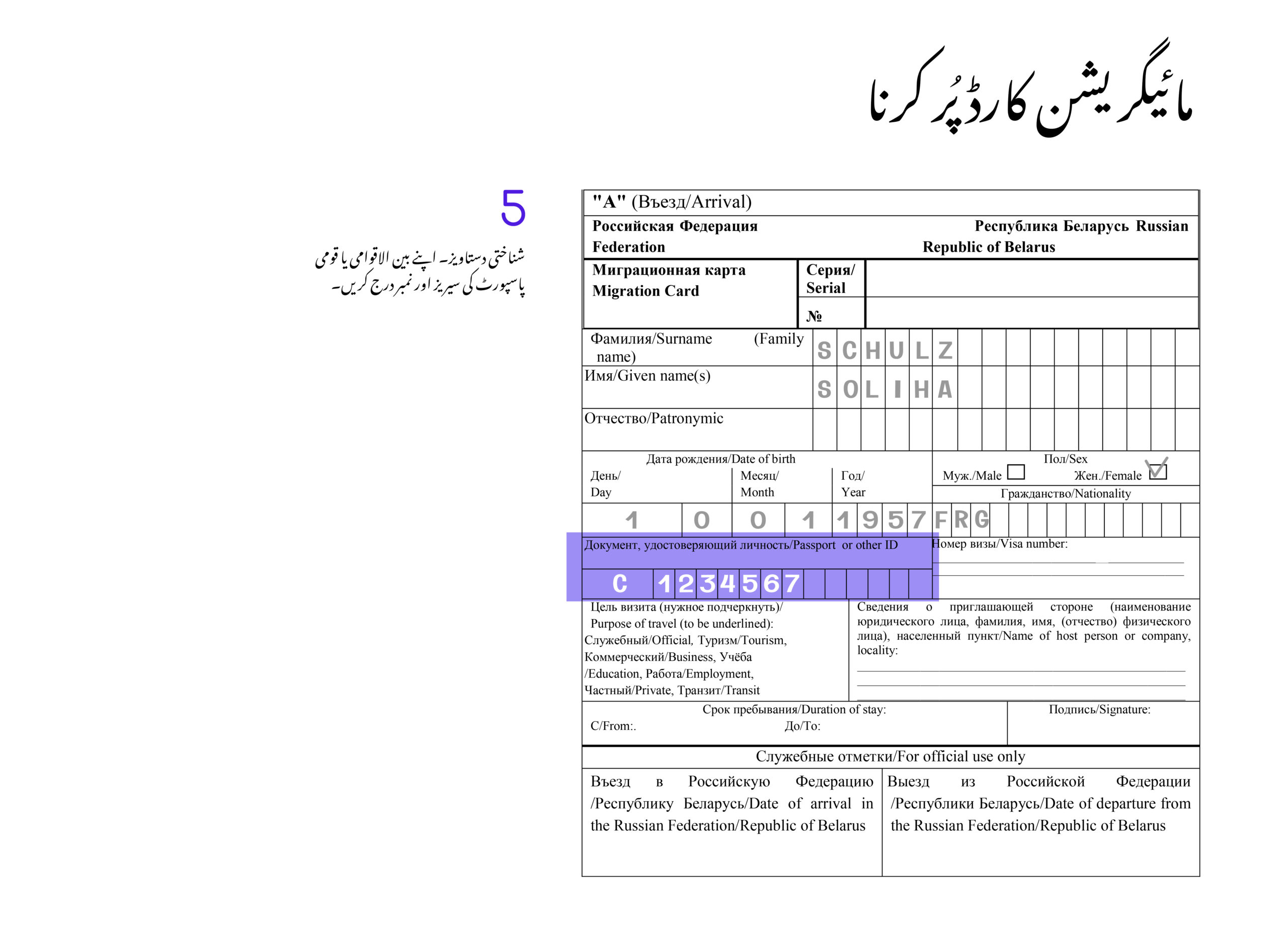 - روس میں داخل ہوتے وقت مائیگریشن کارڈ پُر کریں اور روسی وفاق کے علاقے سے روانگی کے وقت اسے متعلقہ اہلکار کے حوالے کریں۔